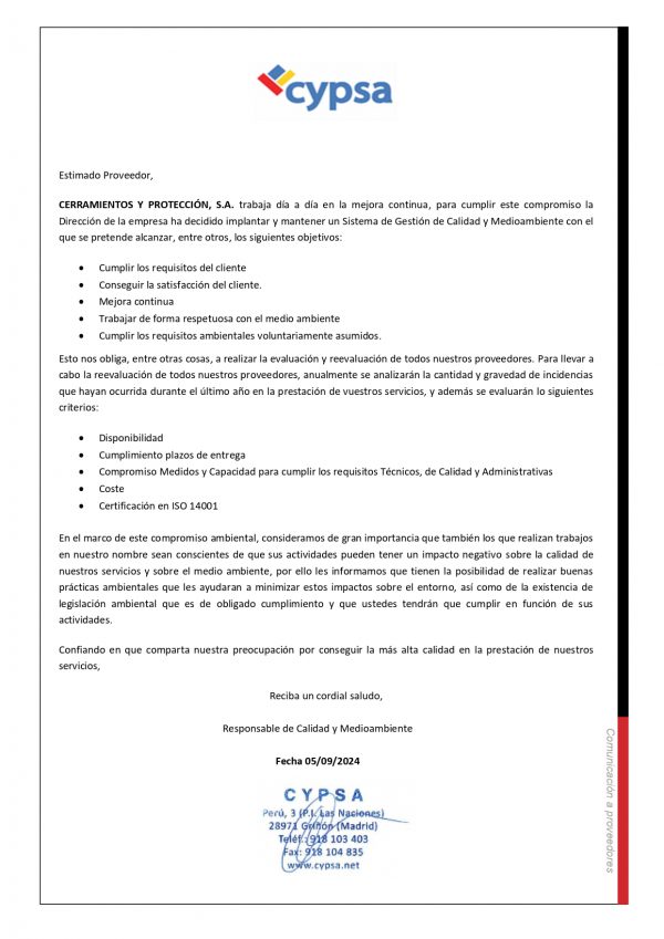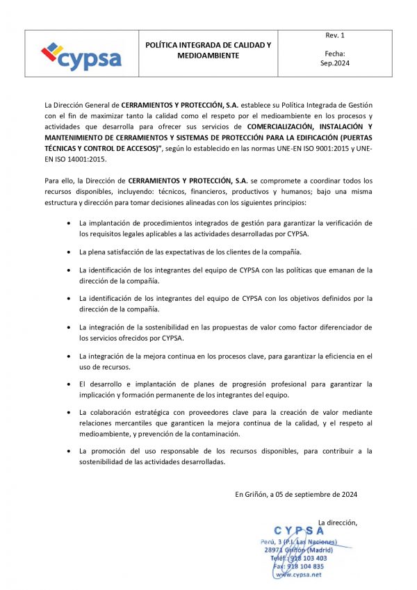 Política de calidad ISO 9001 y medio ambiente ISO 14001